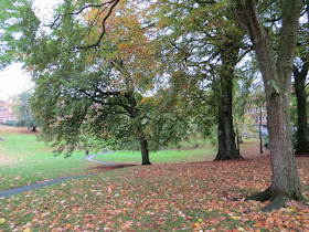 There were fallen leaves everywhere. |